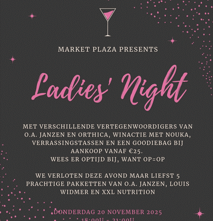 Op donderdagavond 20 november organiseert Market Plaza een gezellige Ladies Night in zowel Burgh als Bruinisse.
